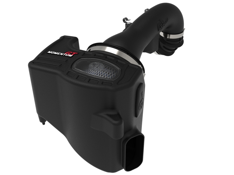 Large Five Layer Performance Air Filter: This 360-degree radial flow air filter features our pre-oiled Pro 5R media with five layers of progressively finer cotton gauze media for maximum performance. Our Pro 5R media provides your engine with the largest amount of high-flowing air, usually resulting in the highest power gains out of all our filter media options. This media is perfect for street use. Its inverted top makes for more filter surface area, resulting in longer service intervals. Filter-to-Housing Interface: Momentum’s innovative filter-to-housing interface was built to feature the largest air filter possible. Once the system is installed, the air filter can be easily removed from the housing for maintenance by only uninstalling the intake tube. Unique One-Piece Housing: The smooth one-piece sealed housing, constructed of heat-resistant cross-linked polyethylene (XLPE), features our patented (US PAT 9440175) filter-to-housing interface. Its innovative design minimizes the total number of parts, making for an easy installation. A large, clear sight window allows for hassle-free filter inspection, without having to disassemble your system. The housing utilizes the factory air inlet, using no additional hardware, and features an optional auxiliary air inlet that pulls in additional air. Dyno-Tuned Intake Tube: This system features a high quality, computer-designed, dyno-tuned intake tube to achieve maximum power gains while maintaining a perfect fit. Its XLPE material is heat soak resistant and extremely durable. Premium Components: Stainless-steel T-bolt clamps are included for strength, and a premium bellows coupling allows for ample flexibility. Momentum GT intakes are designed with fewer parts for a fast and easy installation.. Momentum GT Cold Air Intake System w/ Pro 5R Filter GM 2500/3500HD 20-25 V8-6.6L L8T. aFe Momentum GT Pro 5R Cold Air Intake System GM Trucks 2500/3500HD 2020 V8-6.6L. Clear Sight Window for Convenient Filter Inspection Without Disassembly. Premium T-Bolt Clamps and a Bellows Coupling Provide a Secure Seal. Sealed Housing Utilizes Factory Air Inlet and Auxiliary Air Inlet. Washable and Reusable Pro 5R Air Filter for Maximum Performance. Innovative Filter-to-Housing Interface for Easy Installation. Momentum GT Cold Air Intake System w/ Pro 5R Filter. Momentum GT Cold Air Intake System. Momentum GT Intake
