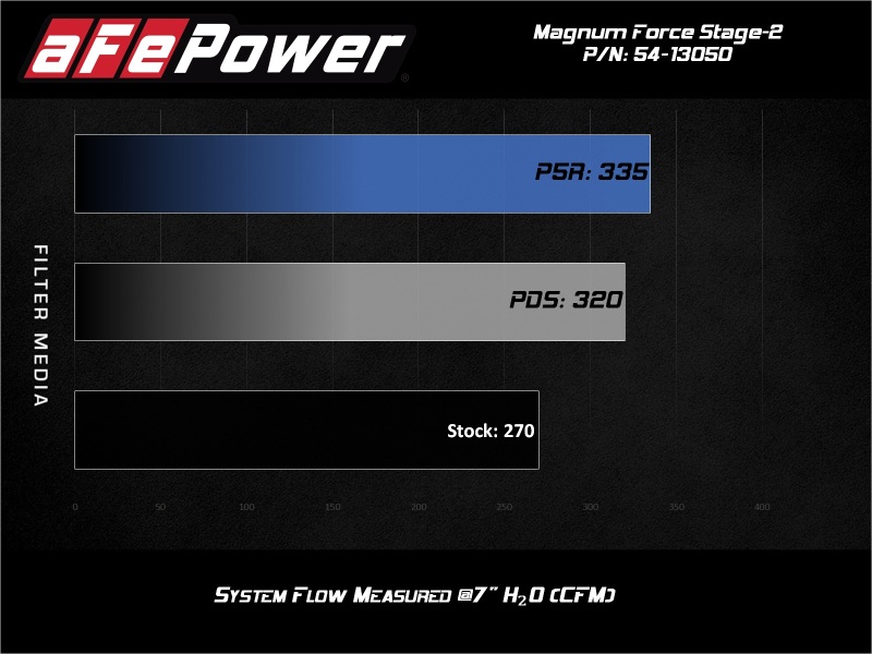 This 360-degree radial flow air filter features a 3-1/2" flange and our pre-oiled Pro 5R media with five layers of progressively finer cotton gauze media for maximum performance. It provides your engine with the largest amount of high-flowing air and delivers the highest power gains in most cases. This media is perfect for street and/or track use. Its inverted top makes for more filter surface area, resulting in longer service intervals. This system features a high quality, computer-designed, dyno-tuned intake tube to achieve maximum power gains while maintaining a perfect fit. Its XLPE material is heat soak resistant and extremely durable. It features an aFe Power design inspired by European vehicles. The included massive air filter is surrounded by an open-element XLPE (cross-linked polyethylene) polymer housing that minimizes warm engine air for maximum performance. Its open design allows for easy viewing of the air filter and delivers an aggressive Air Intake sound. It’s design incorporates the OEM air scoop to ensure that it gets the coldest air available. This is a direct fit intake system that utilizes factory mounting points and requires no cutting or modifications. All necessary clamps, couplings, and hardware are included. Its revolutionary design, featuring our unique filter-to-housing interface, uses half the number of parts of a traditional cold air intake system. Included billet aluminum fittings allows stock connections to transfer over seamlessly.. Magnum FORCE Stage-2 Cold Air Intake System w/ Pro 5R Filter Volkswagen GTI (MKVII) 15-21 L4-2.0L (t). aFe Magnum FORCE Stage-2 Pro 5R Cold Air Intake System 15-19 Volkswagen GTI (MKVII) L4-2.0L (t). Innovative Filter-to-Housing Interface and Minimal Hardware for Fast and Easy Installation. Open-Element Design Showcases the Air Filter and Delivers an Aggressive Air Intake Sound. One-Piece Housing With Integrated Air Scoop to Capture the Coldest Air Possible. Washable and Reusable Pro 5R Air Filter for Maximum Performance. Magnum FORCE Stage-2 Cold Air Intake System w/ Pro 5R Filter. Dyno-Proven Gains up to +14 HP & +14 Lbs. x Ft. TQ. Magnum FORCE Cold Air Intake System. Measured Flow: 335 CFM @ 7” H20. Outflows Factory Intake by 24%. Magnum FORCE Intake