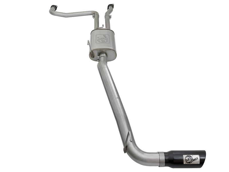 This MACH Force-Xp Cat-Back exhaust system is constructed of 2-1/2" to 3-1/2" mandrel-bent 409 stainless steel and comes complete with free-flowing muffler, tubing, OE style bayonet hangers, band clamps and all hardware necessary for a hassle-free installation. The smooth curves and increased diameter of this exhaust system helps remove restriction and keeps exhaust gas flowing smoothly for increased horsepower and torque. This system is finished off with a 304 stainless steel polished tip that creates the aggressive, high quality look your Titan needs.. aFe MACHForce XP 2.5in Cat-Back Exhaust System w/ Black Tip Nissan Frontier 17-19 V8-5.6L. MACH Force-Xp 2-1/2 Cat-Back Exhaust System w/ Black Tip Nissan Titan 17-24 V8-5.6L". MACH Force-Xp 2-1/2 Cat-Back Exhaust System w/ Black Tip". High Flow Stainless Steel Dual-In To Single-Out Muffler. 2.5 in. To 3.5 in. Mandrel Bent Stainless Steel Tubing. Single 4.5 in. Black Stainless Steel Tip. MACH Force-Xp Cat-Back Exhaust System. Bayonet Style Hangers For Secure Fit. Complete w/Necessary Hardware. Cat-Back Exhaust. Single Side Exit