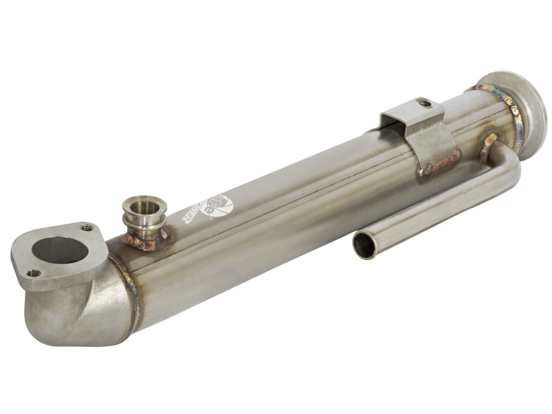No Core Charge! No Core Exchange!: aFe Power is proud to introduce the round body direct replacement EGR Cooler for 2003-2004 V8-6.0L (td) Ford Power Stroke trucks. This EGR Cooler is a 100% new unit, not remanufactured. The cooler utilizes a thicker wall to extend life and resist failure. The unit is TIG welded and pressure tested at the factory. aFe simplifies the buying experience by not requiring a core charge nor a core exchange fee. aFe EGR coolers are constructed from new stainless steel components. All connections are welded not brazed, for reliability. Thicker wall tubes resist clogging, resulting in extended life of the cooler. The heat exchanger tube wall thickness is more than twice as thick as the OE unit. This product does not require a CARB EO#.. aFe BladeRunner EGR Cooler 03-04 Ford Diesel Trucks V8-6.0L (td). BladeRunner EGR Cooler Ford Diesel Trucks 03-04 V8-6.0L (td). All New Construction; Not Repaired or Refurbished. Improved Direct-Flow Design Prevents Failures. All Connections Are Welded Not Brazed. No Core Charge/No Exchange Charge. All Stainless Steel Construction. 2 Year Limited Warranty. BladeRunner EGR Cooler. aFe POWER EGR Cooler. Direct Replacement. Pressure Tested