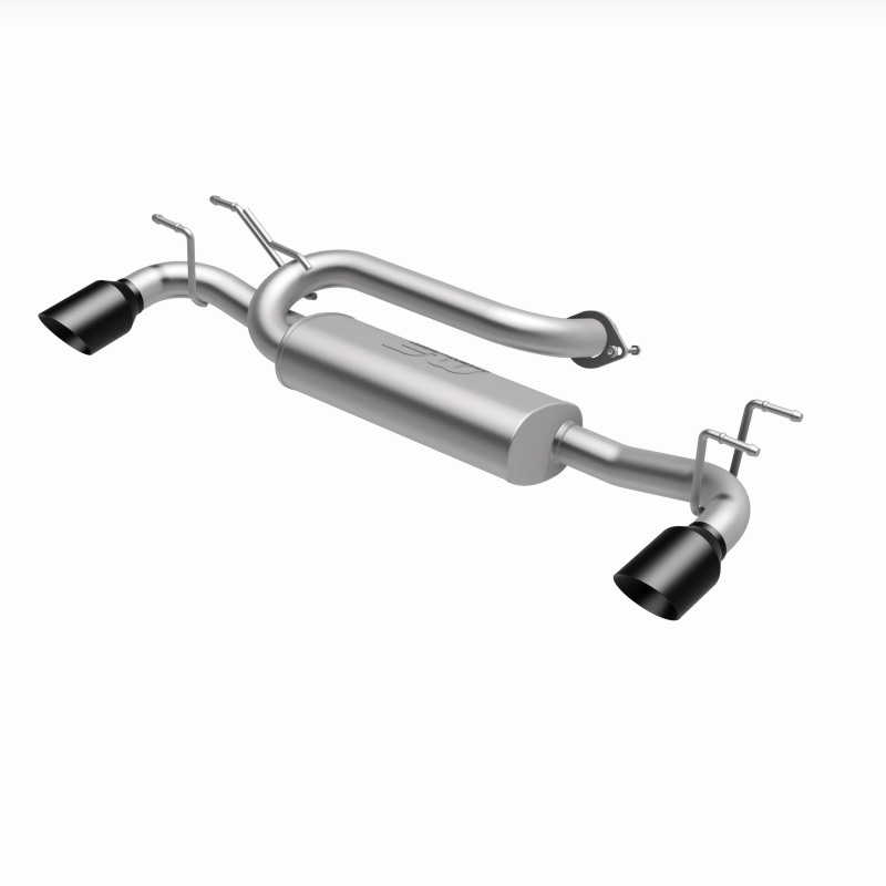 MagnaFlow Mazda 3 Street Series Axle-Back Performance Exhaust (Rear) - Black Chrome - '19–'24. This rear axle-back system delivers MagnaFlow’s signature smooth tone and a measured increase in exhaust flow for the 2019–2024 Mazda 3, finished with dual black chrome tips for a purposeful look.