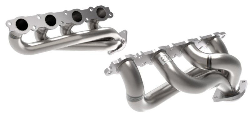 Made from 1-7/8" mandrel-bent 304 stainless steel tubing with heavy-duty laser-cut machined 304 stainless flanges, these headers are built for long-term corrosion resistance and strength. The 4-to-1 mitered merge collectors reduce turbulence and increase exhaust velocity for better throttle response. Designed with CAD for high-tolerance factory fitment and 100% MIG-welded for proven durability, the Twisted Steel headers install in the stock locations and work with the factory exhaust system with no cutting or modifications required. On aFe’s in-house dyno this system produced gains of up to +18 HP and +25 lb-ft of torque.