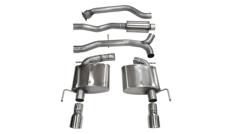 CORSA's Patented Reflective Sound Cancellation(R) (RSC) Technology allows acoustic engineers to create a drone free exhaust sound, styled specifically to fit the personality of your vehicle. Each system is designed to increase vehicle performance, deliver an AGGRESSIVE SOUND under acceleration and a DRONE-FREE EXPERIENCE during cruise. Performance gains are not affected by sound choice.. Corsa 2013-2019 Cadillac ATS Sedan 2.0L A/T Polished Sport Dual Rear Cat-Back Exhaust. 3.0in. Cat-Back Dual Rear Exit with Single 4.0in. Polished Pro-Series Tips. Detailed Printed Instructions Incl. Full-Color Available Online. Patented No Drone Reflective Sound Cancellation RSC Technology. 13-16 ATS SEDN COUP 2L; CB DRE 4.0in. SPRT. Dual Walled Polished Stainless Steel Tips. Custom Tuned - Aggressive Exhaust Note. Flows 35 Percent Better Than Stock. 304 Stainless Steel Construction. Easy Bolt-On Installation. Limited Lifetime Warranty. No Welding Required. No Drone At Cruise. Lighter Than Stock. Made in the U.S.A.. Cat-Back. Exhaust