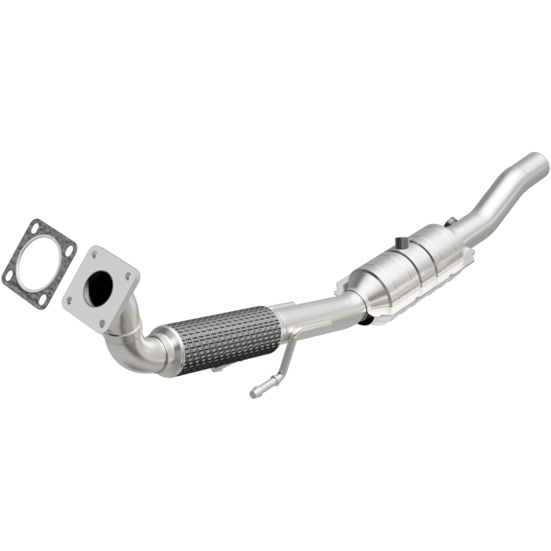Keep the check engine light off with MagnaFlow OEM Grade Federal/EPA Compliant Direct-Fit Catalytic Converter 51464. With features including free-flowing mandrel-bent tubing and highly corrosion resistant stainless steel construction, easily install this spun body converter yourself using the proper tools, no cutting or welding required. MagnaFlow's state-of-the-art metrology department uses the latest 3D scanning systems during research and development, so you can be confident that your new part will fit and function like the original equipment. By replicating the OE spun body design, the single laser fusion weld greatly reduces the possibility of a leak, and our compact, low-mass design also allows for greater thermal efficiency. This direct-fit catalytic converter is designed specifically for the 2004-2005 Volkswagen Jetta and interchanges with OE parts 1J0 254 509 E and 1J0 254 503 K, among others. Avoid potential exhaust leaks by using the included gaskets to get a proper seal. This replacement part is designed to meet or exceed Federal emissions requirements set forth by the EPA, complying with legal standards for OBDII Federally registered vehicles with California or Federal/EPA Emission systems.. Your trusted source for EPA-compliant catalytic converters, providing assurance of genuine compliance while delivering quality that will last. Mandrel bent tubing retains OEM-like design and geometry, ensuring smooth exhaust flow for peak fuel economy and engine operation. OE-sized barbed exhaust hangers made from corrosion-resistant 410 stainless steel, designed to reduce noise and vibration. High Strength 16 Gauge 409 Stainless Steel Tubing For Exceptional Corrosion Resistance And Maximum Service Life. Expertly crafted to replicate OEM-like flow dynamics, maintaining factory performance and fuel efficiency. Expertly Crafted To Replicate Oem-Like Flow Dynamics/Maintaining Factory Performance And Fuel Efficiency. Simplifies Installation With Essential Gaskets And Hardware Being Included In The Box. OE-Sized Barbed Exhaust Hangers Made From Corrosion-Resistant 410 Stainless Steel. Exhaust,MagnaFlow,Catalytic Convertor,Cadillac Convertor,Convertor,Emissions. Not legal for sale or installation in California; Colorado or New York.. Not legal for sale or installation in California, Colorado or New York.. Your Trusted Source For EPA-Compliant Catalytic Converters. Mandrel Bent Tubing Retains Oem-Like Design And Geometry. OEM Grade Direct-Fit Catalytic Converter - Volkswagen. OEM Grade Direct-Fit Catalytic Converter-Volkswagen. Magnaflow OEM Grade Direct-Fit Catalytic Converter. OEM Grade Direct-Fit Catalytic Converter. Durable 308 Stainless Steel Mig Welds. MagnaFlow Conv DF 04-05 VW Jetta 2L. Catalytic Converter. CatConverter. OEM Grade. 25173701