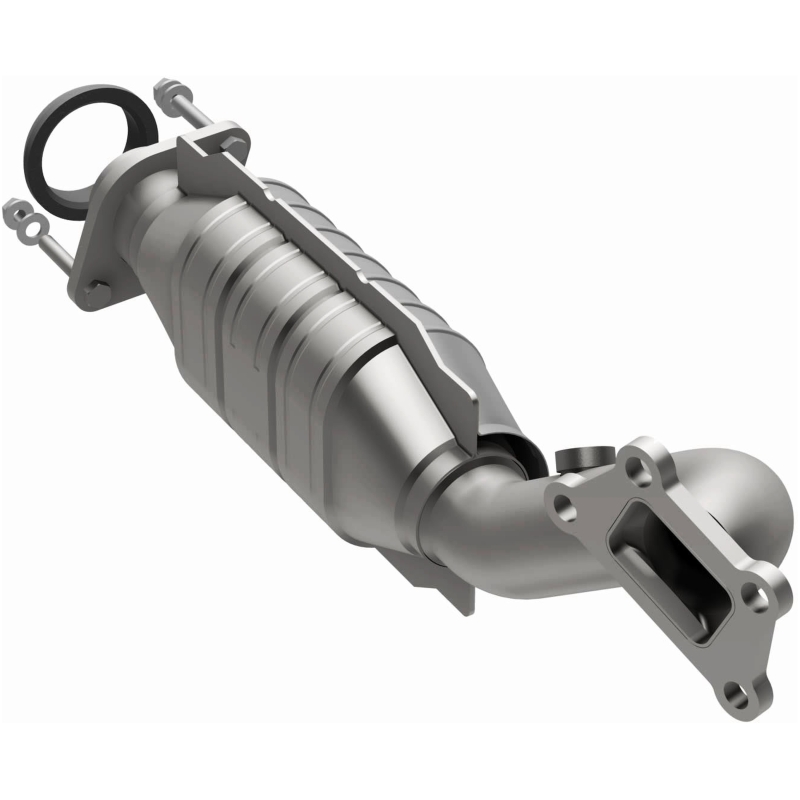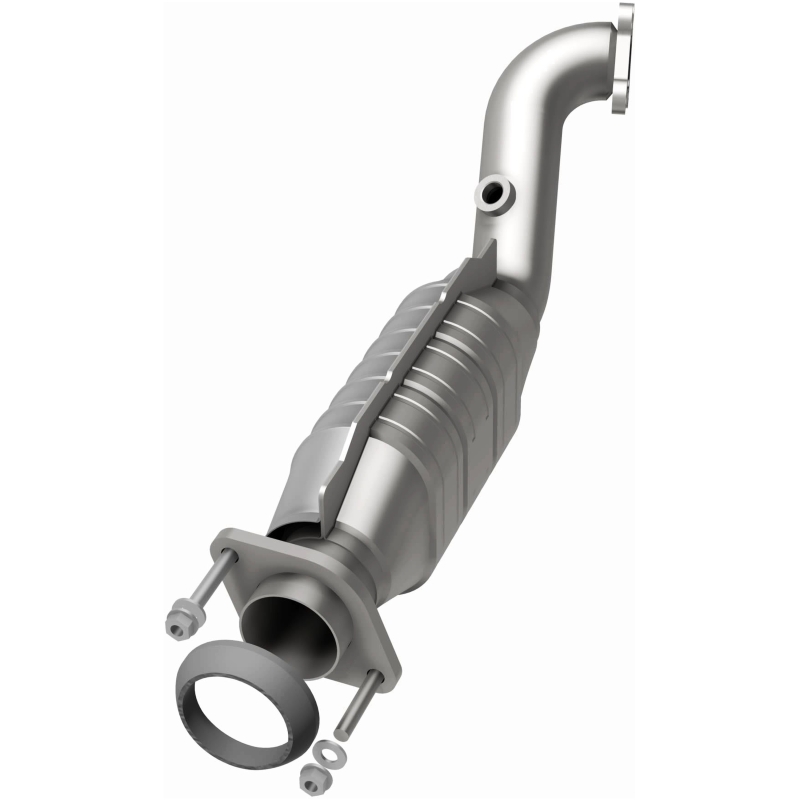 This MagnaFlow OEM-grade catalytic converter is designed using 3D scanning and metrology to match original equipment fit and flow characteristics. Mandrel-bent tubing reduces internal restrictions while durable stainless steel construction resists corrosion for long service life. The unit interchanges with OE part numbers 22882836 and 20943055, and ships with gaskets and hardware to reduce the need to reuse corroded factory pieces. Installation is straightforward for a competent DIYer with the proper tools — no cutting or welding required — and the design aims to maintain factory performance and fuel economy while meeting federal EPA emissions requirements for OBD-II vehicles; check local regulations prior to purchase.
