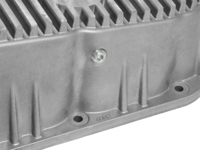 This Transmission Pan does not require modification/bending of the factory hard lines and comes with necessary hardware for installation. This Transmission Pan has an increased fluid capacity of approximately two quarts over stock for better performance over a longer duration. Built-in internal and external fins transfer heat from the fluid to the outside air for maximum cooling. This pan incorporates a magnetic drain plug to capture loose particles for maximum protection. It's mounted on the bottom of the pan, making fluid changes much easier and cleaner.. With its aluminum construction, more fluid capacity, and massive finned surface area, this transmission pan keeps temperatures cooler, longer.. aFe POWER Street Series Transmission Pan Raw w/ Machined Fins Dodge Diesel Trucks 07.5-12 L6-6.7L (td). aFe Transmission Pan Cover (Raw); Dodge Diesel Trucks 07.5-12 L6-6.7L (td). aFe POWER Street Series Transmission Pan Raw w/ Machined Fins. Neodymium Magnetic Drain Plug for Transmission Protection. No Modifications Required to Factory Hard Lines. Constructed from Durable Cast Aluminum. Adds Approximately 2 Quarts Over Stock. Street Series Transmission Pan Raw. Fits 68RFE Transmissions. Transmission Pan