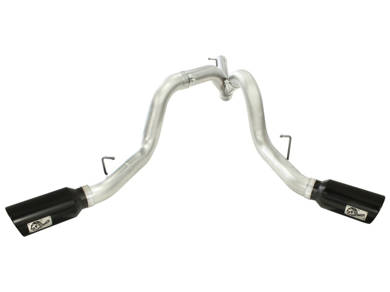 Interested in a new exhaust system for your LML Duramax? Check out the ATLAS Dual DPF-Back exhaust system by aFe. This system is constructed from 4 in. mandrel-bent aluminized steel tubing and uses high quality band clamps and OE-style bayonet hangers. This unit uses all factory mounting locations and comes with a bolt-on bracket that supports the driverside tailpipe. This provides for quick, hassle-free installation with no modification necessary. Also included in this exhaust system are dual massive 6 in. high temp black powder-coated stainless steel tips with laser-cut stainless steel aFe power badges. The tips feature a drain port on the bottom to keep rust and corrosion away. ATLAS exhaust systems are the perfect combination of performance, fit and value. The exhaust is designed to convert the standard exhaust into and aggressive dual exhaust. Fits perfectly without relocating the spare tire. Allows for maximum flow. Smooth transition bends allow for low turbulence, increasing horsepower, torque and lowering EGTs. All aFe exhaust systems are engineered and manufactured in our Corona, California manufacturing facility.. ATLAS 4 IN Aluminized Steel DPF-Back Exhaust System w/Black Tip GM Diesel Trucks 11-16 V8-6.6L (td) LML. aFe MACHForce XP Exhaust Aluminized Dual Split DPF Back 11-15 GM Diesel Truck V8-6.6L (td) (BLK tip). ATLAS 4 IN Aluminized Steel DPF-Back Exhaust System w/Black Tip. Dual 6 in. Polished Tips w/Laser Cut aFe Badges. Bayonet OE-Style/Welded-On Hangers. Increased Flow And Performance. ATLAS DPF-Back Exhaust System. 4 in. Aluminized Steel Tubing. Does Not Effect Spare Tire. High Quality Band Clamps. Hassle Free Installation. 2 Year Limited Warranty. Street Legal Exhaust. DPF-Back Exhaust. Aggressive Sound. Direct Bolt On. 50 State Legal