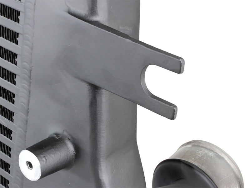 Bladerunner Intercoolers represent the next generation of intercoolers. The Bladerunner intercoolers utilize a 3 IN bar and plate design that out performs OE style tube and fin core designs. The end tanks are constructed out of 3/16 IN TIG welded aluminum plate tanks that incorporate three multi-directional vanes that efficiently direct air flow through the entire core for maximum cooling. The Bladerunner intercooler also comes with 4 1/8 IN pre-tapped ports for easy gauge installation as well as other auxiliary input options. Tested at 200psi which is perfect for the high boost applications. In recent testing the Bladerunner intercooler produced a 200 deg. temperature drop and a 100 deg. EGT drop as well as increasing air flow by 30 percent. Dont waste your time and money on modified factory intercooler. Invest in the aFe Bladerunner intercooler. the most sophisticated intercooler design on the planet.. BladeRunner Street Series Cast Intercooler Dodge Diesel Trucks 94-02 L6-5.9L (td). aFe BladeRunner Cast Intercooler 94-02 Dodge Diesel Trucks L6-5.9L (td). BladeRunner Street Series Cast Intercooler. 3 IN Stainless Steel Tube - Driver Side. BladeRunner Street Series Intercooler. Massive 3 IN Thick Bar And Plate Core. Constant Tension T-Bolt Clamps. 4-Ply Heavy Duty couplings. Hassle Free Installation. 2 Year Limited Warranty. 3-1/2 IN Inlets/Outlets. 44% Larger Than Stock. 40% Flow Over Stock. Cast Intercooler. 100% TIG-Welded. MDV Technology. Lower EGTs