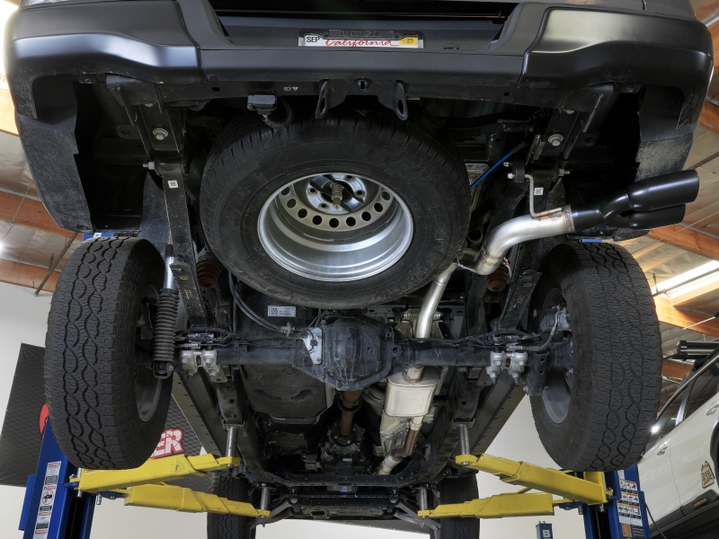 This cat-back exhaust system is constructed of 2-1/2 IN - 3 IN mandrel-bent 304 stainless steel tubing for maximum strength and durability. Finishing off this exhaust system are 304 stainless steel black clamp-on exhaust tips. The tips feature a laser etched aFe POWER logo. This system produces a throaty sound unleashing all available horsepower and torque. 100% MIG-Welded for race-proven strength and durability.. Vulcan Series 2-1/2 IN to 3 IN Stainless Steel Cat-Back Exhaust w/Black Tip Ford Ranger 24-25 L4-2.3L (t). aFe 2024+ Ford Ranger L4-2.3L (t) Vulcan Series 2.5in to 3in Cat-Back Exhaust w/ Black Tip. Vulcan Series 2-1/2 IN to 3 IN Stainless Steel Cat-Back Exhaust w/Black Tip. Constructed from 2-1/2 IN - 3 IN Mandrel-Bent 304 Stainless Steel Tubing. Acoustically Tuned Expansion Chamber for a Deep Exhaust Tone. 4 IN Diameter Black 304 Stainless Steel Exhaust Tip. Utilizes Factory Style Hangers for a Secure Fit. 100% MIG-Welded for Strength and Durability. Vulcan Series Cat-Back Exhaust System. Cat-Back Exhaust