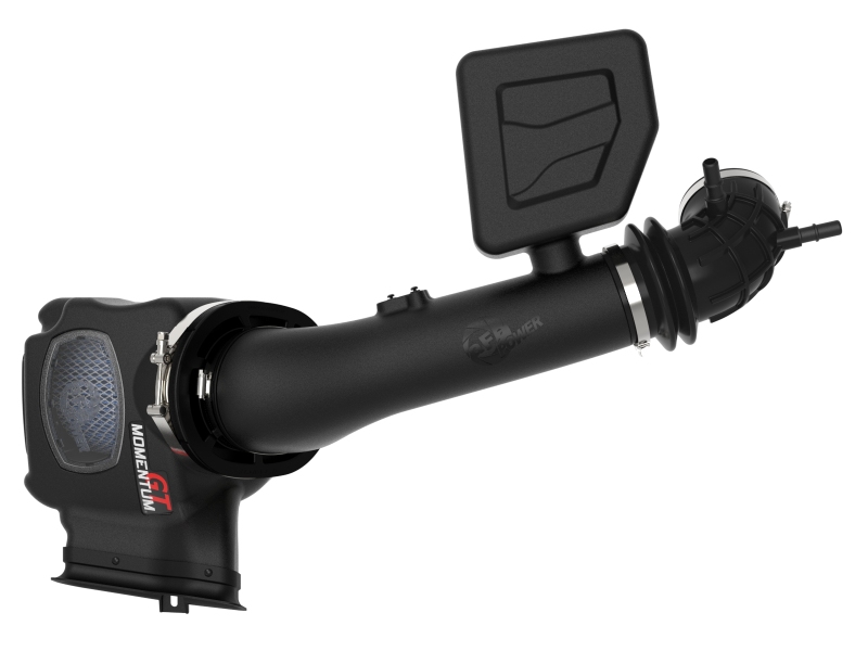 This 360-degree radial flow air filter features our pre-oiled Pro 5R media with five layers of progressively finer cotton gauze media for maximum performance. Our Pro 5R media provides your engine with the largest amount of high-flowing air, usually resulting in the highest power gains out of all our filter media options. This media is perfect for street use. Its inverted top makes for more filter surface area, resulting in longer service intervals. Momentum’s innovative filter-to-housing interface was built to feature the largest air filter possible. Once the system is installed, the air filter can be easily removed from the housing for maintenance by only uninstalling the intake tube. The smooth one-piece sealed housing, constructed of heat-resistant cross-linked polyethylene (XLPE), features our patented (US PAT 9440175) filter-to-housing interface. Its innovative design minimizes the total number of parts, making for an easy installation. A large, clear sight window allows for hassle-free filter inspection, without having to disassemble your system. The housing features a built in air inlet scoop, using no additional hardware, and features an optional auxiliary air inlet that pulls in additional air. This system features a high quality, computer-designed, dyno-tuned intake tube to achieve maximum power gains while maintaining a perfect fit. Its XLPE material is heat soak resistant and extremely durable. Stainless-steel clamps are included for strength, and a premium bellows coupling allows for ample flexibility. Momentum GT intakes are designed with fewer parts for a fast and easy installation.. Momentum GT Cold Air Intake System w/ Pro 5R Filter Ford F-250/F-350 23-25 V8-7.3L. Premium Stainless-steel Clamps and a Bellows Coupling Provide a Secure Seal. Clear Sight Window for Convenient Filter Inspection Without Disassembly. aFe 2023+ Ford F-250/F-350 V8-7.3L Momentum GT Pro 5R Intake System. Washable and Reusable Pro 5R Air Filter for Maximum Performance. Sealed Housing Incorporates Inlet Scoop and Auxiliary Air Inlet. Innovative Filter-to-Housing Interface for Easy Installation. Momentum GT Cold Air Intake System w/ Pro 5R Filter. Momentum GT Cold Air Intake System. Momentum GT Intake