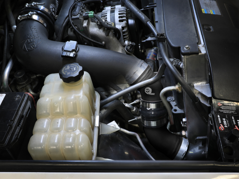 Smooth transitions in the mandrel-bent aluminum pipes decrease turbulence and minimize pressure loss, increasing horsepower and torque. This charge pipe kit provides a smooth transition between the turbo and the engine for lower operating temperatures and increased power. This kit includes high-quality, stainless-steel, spring-loaded T-bolt clamps and heavy-duty, 5-ply, polyester reinforced silicone couplings. This charge pipe kit also features factory style billet aluminum quick-connect adapters with o-ring seals to ensure a leak-free fit while maintaining superior strength and durability. Finished in wrinkle black powder coating with a unique laser-etched aFe POWER logo for a custom look.. Directly replace your Duramax's restrictive charge pipes with aFe POWER's BladeRunner free-flowing, heat-resistant aluminum charge pipes. BladeRunner Aluminum Hot and Cold Charge Pipe Kit Black GM Diesel Trucks 06-10 V8-6.6L (td) LBZ/LMM. aFe 06-10 GM Diesel Trucks V8 6.6L BladeRunner Aluminum Hot & Cold Charge Pipe Kit - Black. Features Premium Stainless-Steel Spring-Loaded T-Bolt Clamps And 5-Ply Silicone Couplings. 1/8" NPT Ports are Provided for Connecting Sensors or Water Methanol Injection. Features Factory Style Quick-Connect Adapters With O-Ring Seals. Powder Coated Wrinkle Black for Heat and Corrosion Resistance. TIG-Welded 3" Hot Side and 3-1/2" Cold Side Aluminum Pipes. BladeRunner Aluminum Hot and Cold Charge Pipe Kit Black. BladeRunner Charge Pipe Kit. Charge Pipe Kit