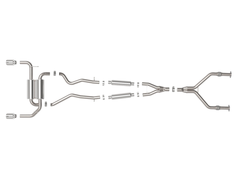 Infiniti Q50 Performance Exhaust - aFe - Takeda Cat-Back - Polished - `14-`15. This Takeda cat-back exhaust is designed for the 2014–2015 Q50 V6 3.7L to provide durable construction and a more aggressive exhaust note without cutting or modifications.