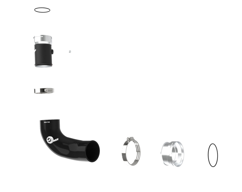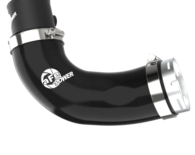 aFe BladeRunner Hot Charge Pipe for the Kia Stinger 22-23 is a direct-replacement 2-1/2" aluminum hot charge pipe finished in wrinkle black. It replaces the factory charge pipe to reduce restriction and is built for heat resistance and long-term durability.