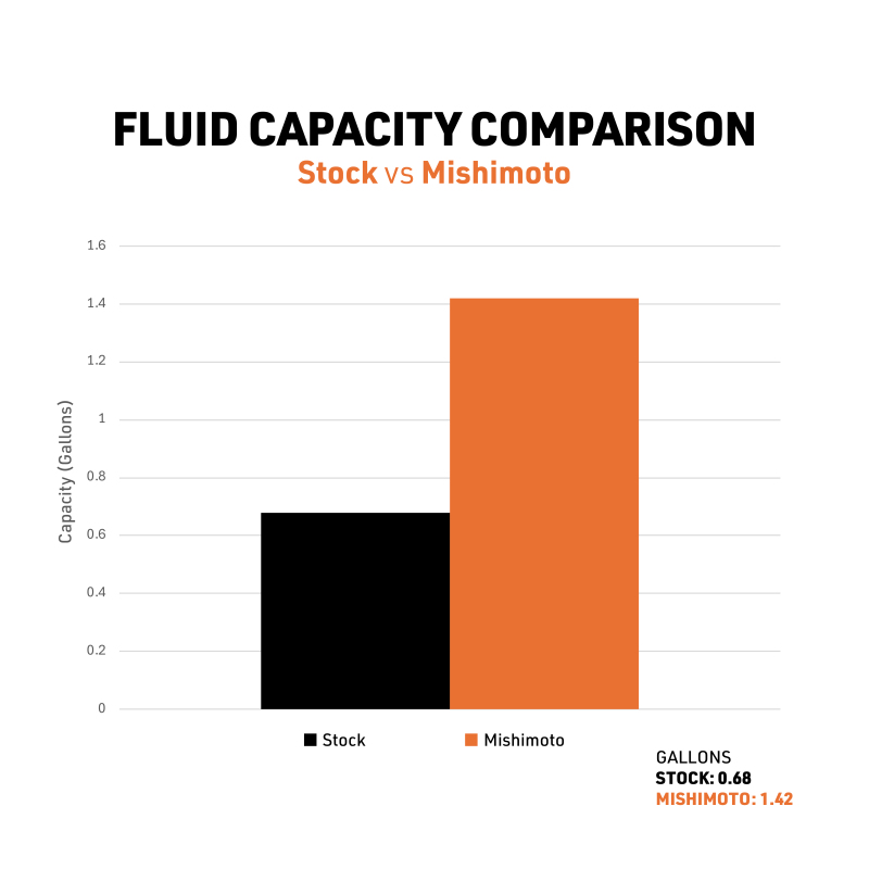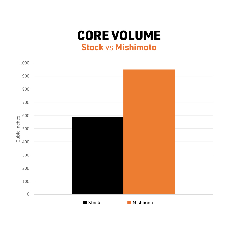 - 60% increase in core volume and 120% more internal tube area vs stock