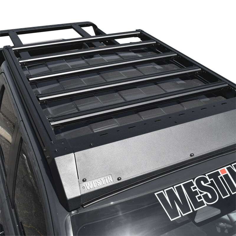 Introducing the all-new Westin Mesa Roof Rack, the ultimate companion for adventure enthusiasts and outdoor explorers! Crafted with precision engineering using high-quality extruded aluminum. This premium material offers unparalleled strength, durability, and corrosion resistance, making it the perfect choice for outdoor enthusiasts seeking a reliable and long-lasting roof rack. The multi-purpose cargo management system of the Westin Mesa Roof Rack is designed with flexibility in mind. Its 2.5in. x 1.5in. adjustable crossbars allow you to customize the setup according to the size and shape of your cargo. It features a removable 16-gauge aluminum wind deflector panel and 11-gauge aluminum visor side frames that serves a dual purpose. First, the wind deflector enhances aerodynamics by redirecting airflow, reducing drag, and minimizing wind noise during your travels. Enjoy a quieter and more fuel-efficient journey, all while maintaining a sleek and stylish appearance. Second, removing the wind deflector panel reveals a convenient light mount channel. This innovative design feature allows you to easily install auxiliary lighting to illuminate your path during nighttime adventures or low-light conditions enhancing your visibility and safety. The Mesa Roof Rack is built to last and features an electrostatic base coat for superior corrosion resistance, in combination with a durable textured black powder coat finish. All Mesa Roof Racks come complete with all necessary hardware to provide a hassle-free installation, while providing a full 3-Year warranty. Whether you're planning a weekend camping trip, a cross-country road adventure, or simply need extra storage space for your gear, this roof rack is the perfect solution.. Includes rubber trim on front visor, mounting brackets and all necessary hardware for installation. Includes Rubber Trim On Front Visor Mounting Brackets And All Necessary Hardware For Installation. Multi-purpose "cargo management system" allows variety of gear storage. Removable 16-gauge wind deflector panel to reveal light mount channel. Westin 2024 Toyota Tacoma Double Cab Mesa Roof Rack - Textured Black. Multi-purpose Cargo Management System Allows Variety Of Gear Storage. Visor side frame are made from 11-gauge aluminum constructionn. E-coated base coat provides long lasting corrosion protection. Visor Side Frame Are Made From 11-Gauge Aluminum Construction. Crossbars Are Made From A 2.5 x 1.5 in. Extruded Aluminum. Crossbars are made from a 2.5" x 1.5" extruded aluminum. Top support rails can be mounted in multiple positions. Engineered to accommodate most roof top tents. Bolt-on installation - no drilling required. Textured black powder coat finish. Accommodates Most Roof Top Tents. Extruded aluminum construction. Mesa Roof Rack;Textured Black;. Mesa Roof Rack. Textured Black. Roof Rack. ROOFRACK