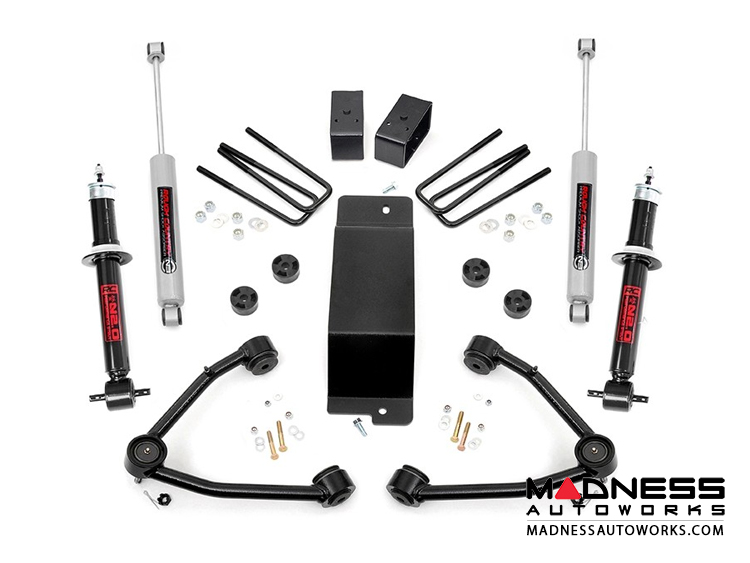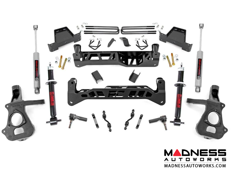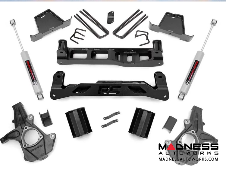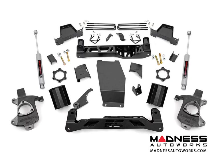 This NTD kit is easier to install, handles better than ever, and looks killer from any angle. Gain greater clearance, better handling, and the cleanest looking 4" lift available! A set of lifted front knuckles and 5" rear blocks allow your 1500 to run up to 33" tires, while a full set of drop cross members, differential drop brackets and non torsion bar drop brackets keep everything tucked, hidden, and at optimum angles. This fully loaded suspension lift also includes a set of (4) Premium N3 Shocks, front CV spacers, sway-bar links, and a protective skid plate to give you everything you need to get rolling in one of our best kits, at a great price.