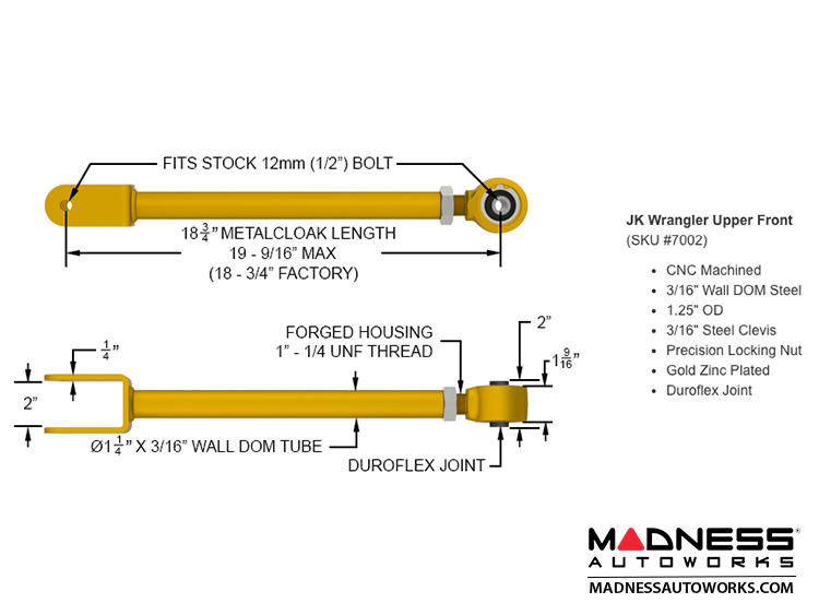 - Fully adjustable Solid Chromoly front Durotrak track bar increases ride stabibility.