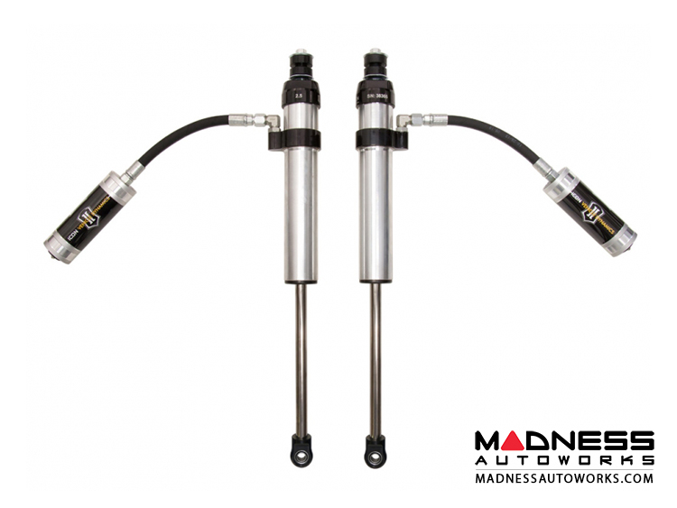 The Vehicle Dynamics V.S. 2.5 Series Front Remote Reservoir Shocks for 3 in. Lift shines in off-road conditions. Features like ICON’s internal “Bump Zone” help give these shocks their impressive compression damping. In addition, the improved heat dissipation helps prevent shock fade during prolonged use. These are shocks you can depend on for a quality ride.