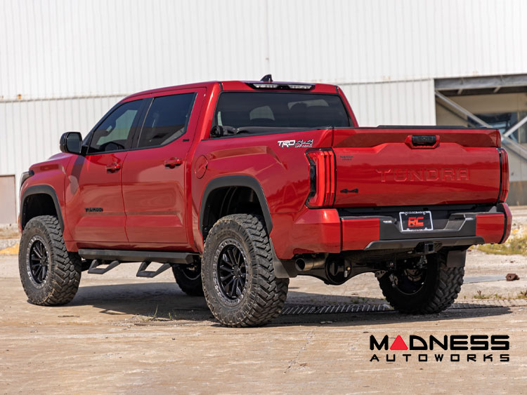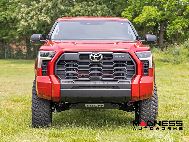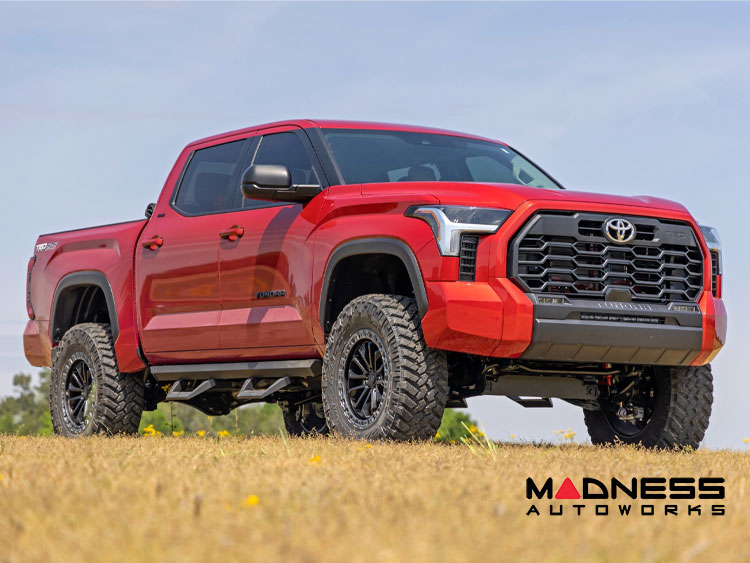 Rough Country's 6-Inch Lift Kit for the 2022+ Toyota Tundra makes it easy to gain that much-needed ground clearance and run up to a 37" tire for that aggressive look you want! Designed to maintain factory track width and alignment specs, this kit boasts premium components, giving you a higher-quality lift on your Tundra. The high-quality components and a high-clearance design provide the strength, stability, and up-travel you need to conquer almost any terrain.