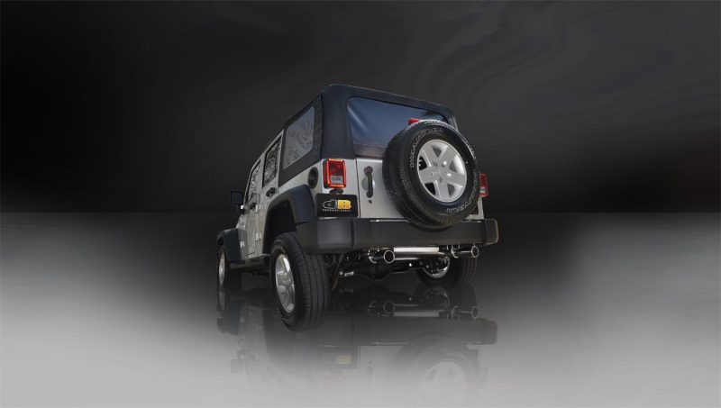 Enhance your driving experience with the Jeep Wrangler JK - COR Axle-Back Sport, an exhaust system designed to deliver an invigorating sound and boost vehicle performance. Developed with the innovative dB by CORSA's patented Reflective Sound Cancellation® (RSC) Technology, this exhaust system ensures you experience a deep, aggressive rumble without the annoying drone noise during highway cruising, thanks to its finely engineered acoustic design.