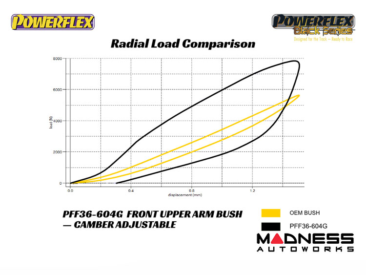- 20% increase in stiffness compared to the original equipment rubber bushings.