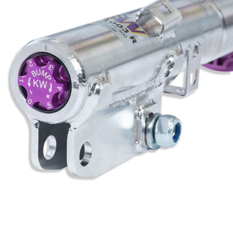 The KW V3 Coilover Kit expertly minimizes pitching and rolling movements during load shifts, such as during evasive maneuvers, cornering, acceleration, and braking. By reducing these forces, the kit significantly shortens braking distances and enhances overall vehicle dynamics, resulting in a safer and more enjoyable everyday driving experience. The suspension system is adjustable, offering separate controls for compression and rebound damping. This enables a high degree of customization, allowing you to tailor the ride to your personal preferences or adjust for modifications such as changes in vehicle weight, tire characteristics, or chassis rigidity.