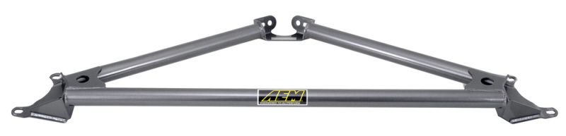 Dive into the world of enhanced vehicle stability with AEM's expertly crafted strut tower bar. Constructed from 1-1/2 inch high-strength steel tubing, this single welded assembly ensures both durability and lightness, making it an ideal choice for those seeking precision and reliability. The 29-0009 model features a built-in brake master cylinder brace, providing increased pedal firmness and consistent braking performance, which is crucial for both daily driving and competitive racing. Coated in a sleek charcoal gray finish adorned with the AEM logo, this strut bar promises a polished and high-performance look under your hood.