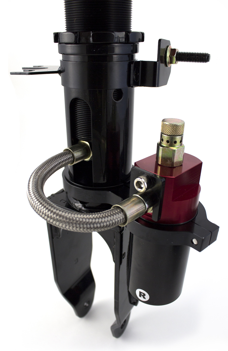 This innovative coilover suspension kit features a compact, double-bellows air spring over a 30-level damping adjustable monotube shock, providing superior ride quality and handling. With independent adjusters for compression and rebound damping and piggyback-style nitrogen canisters, it offers unparalleled customization. The kit's high-quality components, such as the red anodized upper mount with a monoball bearing, black chromed steel shock bodies, and powder-coated lower mounts, are not only durable but also visually striking. Engineered for longevity, the key suspension components have undergone rigorous testing, equalling 100,000 miles, ensuring they withstand the demands of everyday driving and spirited track sessions.