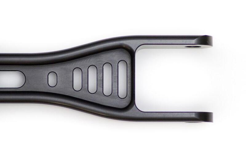 Engineered with precision, these rear toe links provide an essential upgrade over stock components by offering a larger range of adjustment and enhanced strength and durability. The body is constructed from CNC milled 6061-T6 Billet Aluminum, utilizing Finite Element Analysis (FEA) to ensure it meets and exceeds factory standards. The innovative Double Adjuster is made from electroless nickel-plated 4130 Chromoly, combined with 6061-T6 Aluminum clamps, effectively reducing weight and preventing corrosion, all while allowing for rapid and simple adjustments. The addition of Blue Anodized Titanium hardware further reduces unsprung weight without sacrificing strength. For exceptional operation in both street and track settings, PTFE lined rod ends are employed to minimize friction, enhance articulation, and eliminate bushing deflection under load. These rod ends are also self-cleaning, ensuring longevity and reliability.