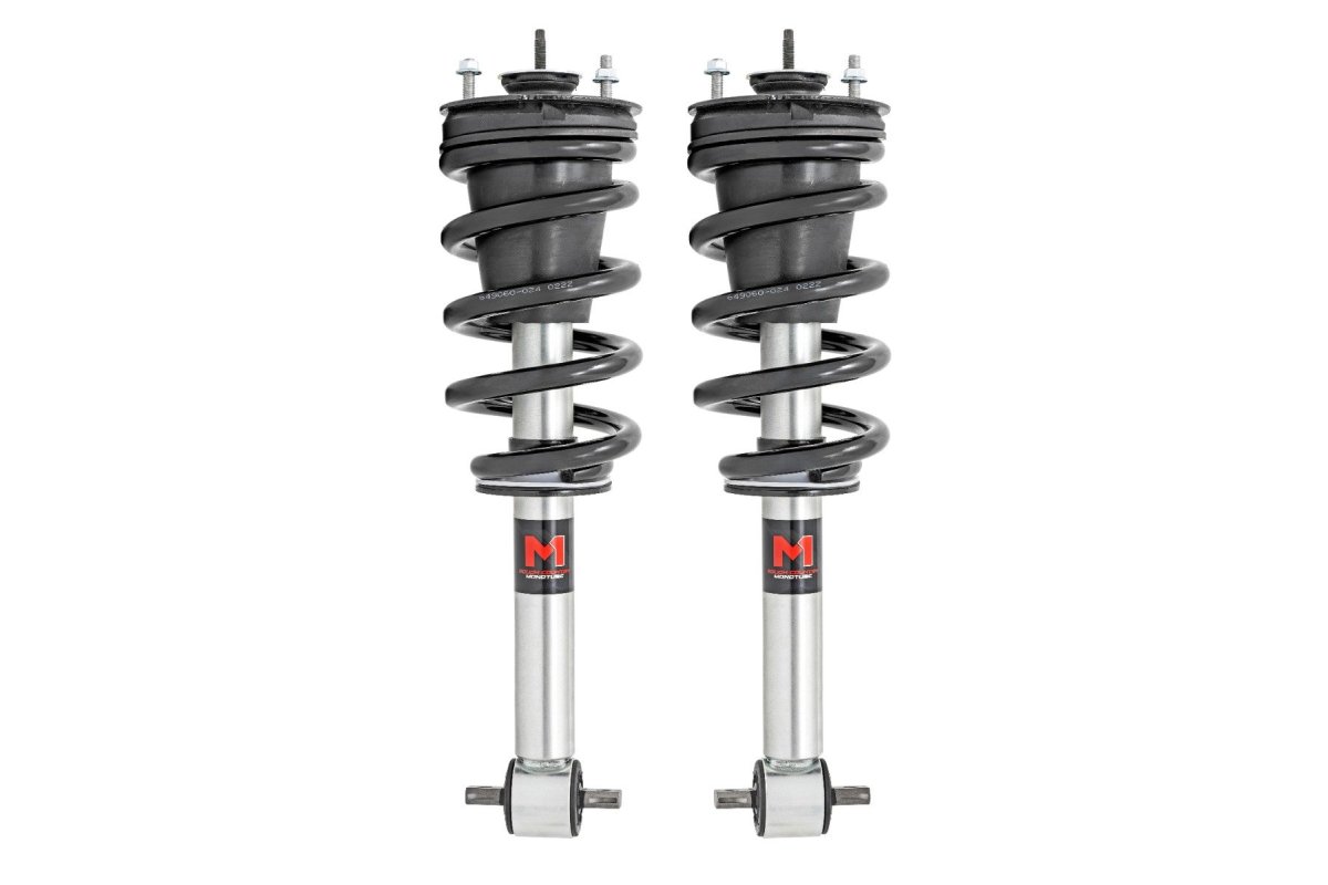 Designed with precision and quality in mind, the Rough Country M1 Loaded Strut Kits help stabilize your vehicle's movements, augmenting control when turning, braking, accelerating, or traversing uneven surfaces. The adjustable ride height feature ensures that your suspension remains at optimal performance, avoiding overextension and providing a more consistent and stable ride. These M1 monotube struts are crafted for rugged off-road prowess, featuring a 46mm digressive piston to maintain smooth ride quality.