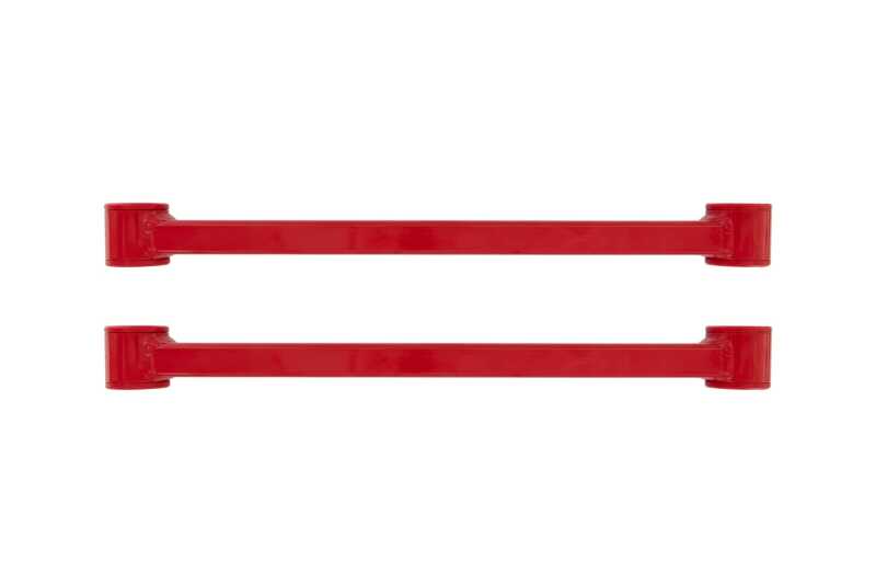 UMI's 2543 rear toe rods are the first choice to improve toe stability on your 6th Gen Camaro. Strong rectangular tube construction and high-performance polyurethane bushings stabilize the rear suspension and improve system stiffness.. Fits in factory location with no adjustment or modification required. Heavy duty 1.5x1x.120 steel rectangular tube construction. Greaseable, medium durometer polyurethane bushings. UMI 16-24 Chevrolet Camaro Alignment Toe Arm - Red. Easy bolt-on for improved handling performance. 2543 - 2016-2024 Camaro Rear Toe Rods. Gloss black or UMI red powder coat. UMI- Rear Toe Arms Polyurathane. 100% Made In USA. Rear Control Arm