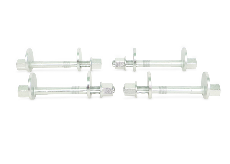 Complete set of replacement Camber Bolts for both sides Please Note : This kit includes 4 camber bolt assemblies, 1 kit includes bolts for both locations in the front lower control arm for both sides of the vehicle These camber bolts overcome the problems associated with the O.E lower inner camber bolts. The trouble starts when the front lower camber bolts rust into the tubes of the standard camber bolt set up and the tube of the rear bushing. A one piece front bolt and rear bolt designed to not corrode makes future wheel alignments trouble free.. Superpro 16-23 Toyota Tacoma HD Camber Pin Set. Alignment Caster / Camber Kit