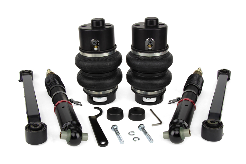 - Double-bellow air springs — up to 155mm (6.1 in) drop from stock