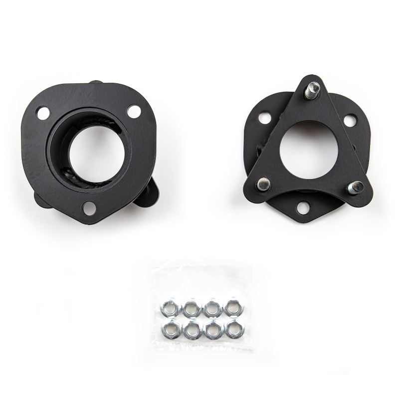 Installing Belltech Strut Spacers on today's late model strut equipped trucks offer an application specific, economical and simple installation solution to effectively level the front end of your new truck or SUV. This allows the needed clearance for larger aggressive offroad wheel/tire combinations.. Belltech's fabricated steel front leveling strut spacers offer a cost effective solution to level the front end of your truck or SUV. Does not require oem strut disassembly to install. Lifetime warranty.. strut spacer, belltech strut spacer, bell tech strut spacer, strut spacer lift, truck strut spacer. 2005-2017 Nissan Frontier/Xterra 2wd/4wd (All Cabs) 2.5" Strut Spacer. Allows for installation of larger more aggressive wheel/tire combo. Belltech 05-17 Nissan Frontier / Xterra 2.5in Front Strut Spacer. Max Tire Size: 33 in.-35 in. (Note: Application specifc). 2-3 in. lift (Applicatin specific). 2.5" Lift Front Strut Spacer. BELLTECH LEVELING SPACER. Suspension Strut Spacer. Ease of installation. Economical solution. LEVELING SPACER. Ships in 1 box