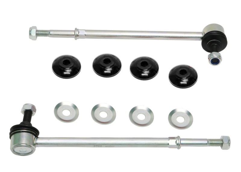 Knock, knock, knock! That's the sound you hear when your sway bar links are not doing their job. Links are a common service item due to either worn or over compliant bushings/ joints and possibly bent or snapped centre bodies. Upgrade from the old units to Whiteline sway bar links with superior features that outlast and outperform the original equipment.. By eliminating flex associated with original equipment, these high strength links are engineered to improve overall performance, increased rigidity and responsiveness which can be felt especially during lane changes and initial turn.. Protective plating on all metal components acts as a hard skin that is much tougher than conventional paint allowing this product to withstand the toughest conditions and resist corrosion for years to come.. Manufactured from high quality steel and include heavy duty steel ball joint ends ensuring maximum strength and durability.. Whiteline's latest technology synthetic elastomer formulation boasts resistance to oil, grease, ozone and weathering.. Install guide included providing detailed instructions on how to install your new Whiteline purchase.. Whiteline Plus 10/02-08/06 Pontiac GTO 8cyl Front Sway Bar Link Assembly. Suspension Stabilizer Bar Link Bushing Kit. Whiteline Sway bar - link.. Whiteline Sway bar - link. Sway Bar Link - Assembly. Sway bar - link. Link Kit