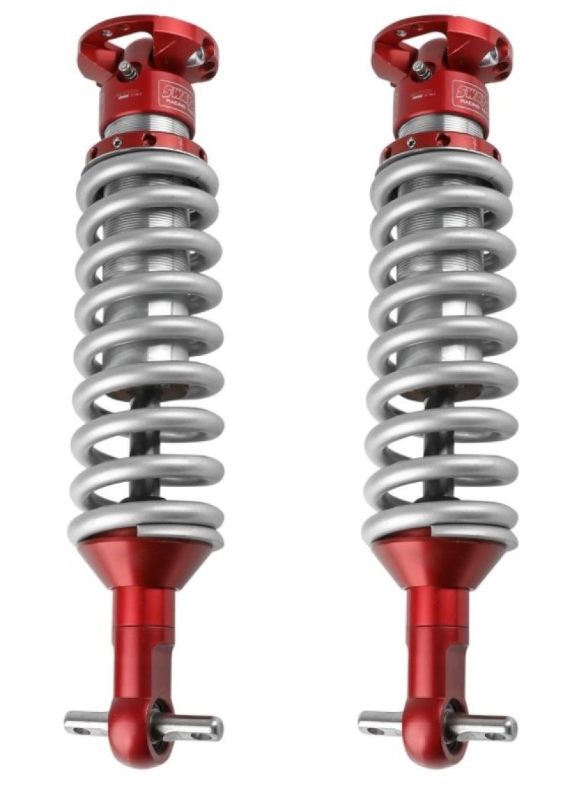 Sway-A-Way High Performance 2.5 emulsion coilover shocks feature 20+ years of race winning engineering and testing that provides exceptional off-road damping without sacrificing any on-road comfort. These kits are designed and built in the USA and feature bright zinc plated steel cylinder bodies and CNC machined aluminum components for guaranteed strength and durability. This kit is pre-set to provide a 2 IN to 2.5 IN lift. Sway-A-Way 2.5 Front Coilover Kit Ford Ranger 19-23 L4-2.3L (t). 7/8” Polished Nitro Steel Shaft for Strength and Durability. CNC Machined Components are Made to the Strictest Tolerances. aFe Sway-A-Way 2.5in Front Coil Over Kit 19-21 Ford Ranger. Completely Adjustable and Rebuildable Using Simple Tools. Specifically Formulated 7wt, Fully Synthetic Shock Oil. Direct Fit Installation Requires No Modifications. Multi-Seal Carrier to Ensure Zero Leakage. Teflon lined steel spherical bearings. Sway-A-Way 2.5 Front Coilover Kit. Sway-A-Way Coilovers