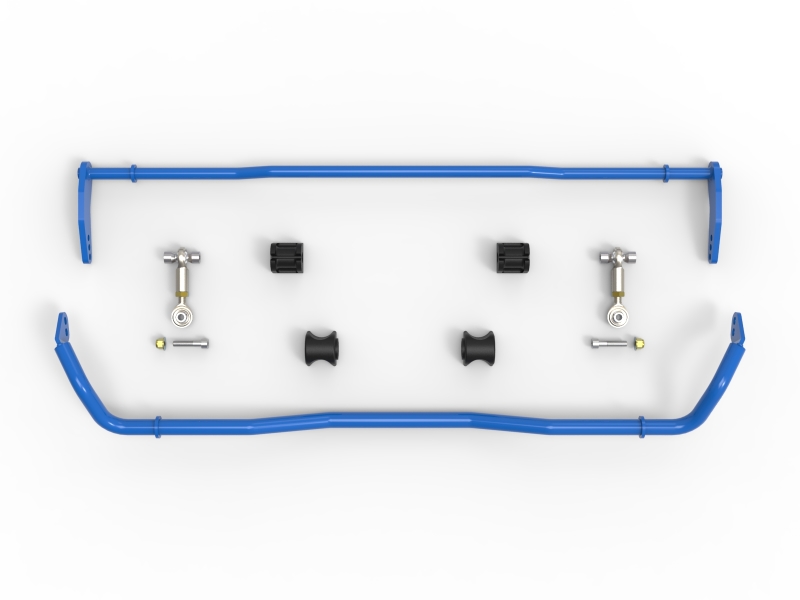 Take your GR86/BRZ to the next level with aFe CONTROL’s sway bars. With our fully adjustable sway bars, you can easily dial in the handling balance and eliminate understeer. Body roll will be reduced, maximizing tire contact with the road. Shortened transition response will improve initial turn-in making the car more agile and feel lighter. Whether its stability on the track, more rotation on the autocross, or just adding confidence in the canyon, aFe CONTROL sway bars will deliver. Every aFe CONTROL sway bar is CAD designed and CNC bent to strict tolerances. This insures precise fit and perfect operation. Our front sway bar is 2-way adjustable and rear sway bar is 3-way. This allows the driver to dial in the front and rear roll resistance to achieve the desired handling bias. Front sway bars utilize laser cut end plates and the rear is equipped with laser cut arms. These are welded to the bar in a dedicated fixture to insure accurate hole positioning and consistent manufacturing. aFe CONTROL’s end links use PTFE lined Aurora rod ends with high articulating misalignment spacers. These are also length adjustable if you want to adjust out any static pre-load in the rear bar. aFe CONTROL includes low-deflection polyurethane bushings.. 320 lbs/in (113% Stiffer than GR86)     405 lbs/in (170% Stiffer than GR86)     525 lbs/in (250% Stiffer than GR86). aFe CONTROL Front and Rear Sway Bar Set Blue Toyota GR86/FR-S/BRZ 13-25 H4-2.0L/2.4L. 467 lbs/in (211% Stiffer than GR86)     575 lbs/in (283% Stiffer than GR86). aFe 13-23 Toyota GR86 H4-2.4/2.0L Control Front and Rear Sway Bar set. Direct Fit Installation Requires No Modifications. Ø25.4mm (1”) Front Sway Bar, 2-Way Adjustment. Ø19mm (0.75”) Rear Sway Bar, 3-Way Adjustment. aFe CONTROL Front and Rear Sway Bar Set Blue. CNC Bent, Tubular & Solid Sway Bars. 90A Durometer Polyurethane Bushings. High Articulating Rear End Links. aFe CONTROL Sway Bar Set Blue. Durable Blue Powder Coat. Proudly Made in the USA. Sway Bar Set