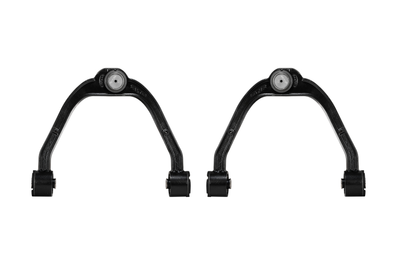 This pair of adjustable front upper control arms lets you dial in camber settings to restore tire contact patch and improve handling after lifts, drops, or wear-related misalignment. The design allows for toe and caster compensation during alignment. Notable for its adjustability, the kit can add +2° of caster; by swapping sides it can be set to -2° of caster if desired. Sold as a pair to ensure matched geometry across the front axle.