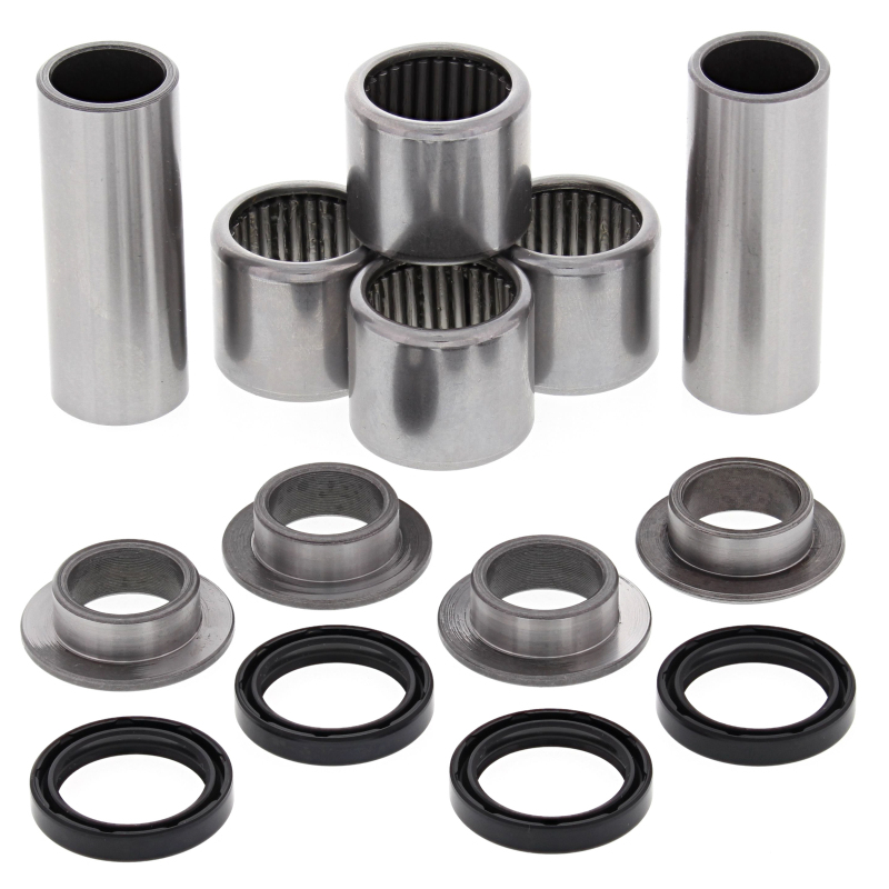 POM composite washer bearings replace thrust needle washers for increased service life and superior resistance to water and dirt. Needle bearing shafts are made with 52100 bearing steel that has been hardened and precision ground. Kits contain all the components required to properly rebuild the swingarm bearing assembly. All-metal bushings are case hardened and plated to prevent wear and corrosion. All Balls Racing 08-14 Kawasaki KFX450R Swing Arm Bearing Kit