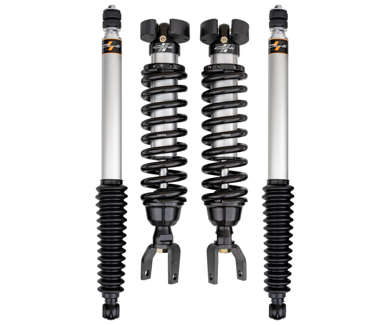 Designed for a a smooth and conrtrolled on-road ride, the Carli-SPEC Commuter shocks are the perfect choice for those wanting improved handling and comfort at a reasonable price.. Durable aluminum body 2.0 internal reservoir rear shocks provide improved rear suspension travel and are protected from the elements with rubber shock boots.. Front lift heights will vary depending on Ram model (Rebel, EcoDiesel, Rambox, Ect.). 2.5" internal reservoir front coilovers provide 2.5" of front lift height.. Carli 2.5 Coilover/2.0 Shock Set, 2.5″ Lift, 2019-23 Ram 1500, 4x4. Carli 19-23 Ram 1500 4x4 2.5 Coilover/2.0 Shock Set 2.5in Lift. Requires rear Carli coils and sway bar end links.. Compatible with factory Ram upper control arms.. AS-RAM15SPKG-CS20IFP-B. Shock Absorber Set