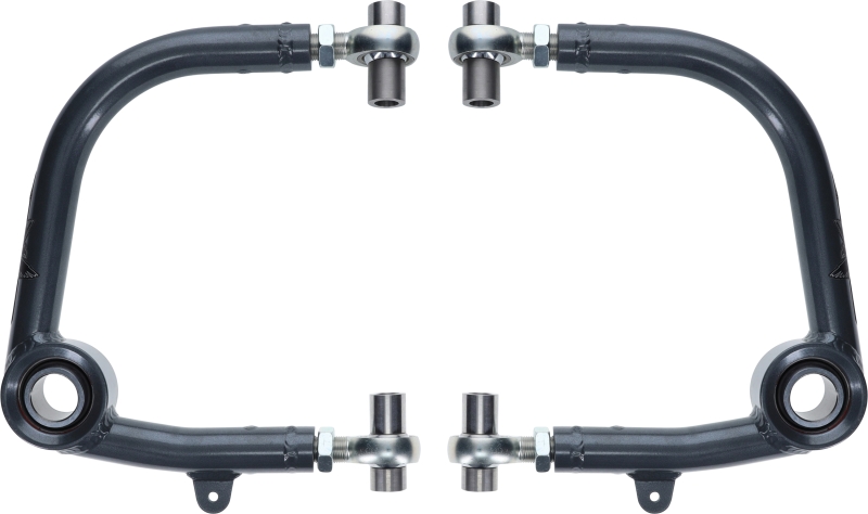 Our Camburg upper arms are designed to address the limitations of stock upper arms when lifting your truck. By replacing the stock ball-joint with a uniball bearing, we improve wheel travel and durability under extreme conditions. We also enhance the vehicle's alignment and driving characteristics by adjusting the camber curve and adding more caster. Our arms feature stronger FK 3/4" chromoly heim joints for additional camber and caster adjustment, eliminating flexing and binding. Using advanced CAD/CAM engineering software and our FARO laser scan arm, we ensure precise design and fit. Manufactured in-house, our arms undergo CNC laser cutting, bending, MIG welding, sandblasting, and powder-coating. Machined parts, including uniball mis-alignment spacers, are made in our CNC machine shop using heat-treated stainless steel. Our arms increase usable wheel travel, correct camber and caster, and eliminate weak factory ball-joints. They are made in the USA and come with all necessary hardware for installation.. Given the multitude of factors such as wheel size, offset/backspacing, tire size, brand preferences, and suspension specifics, adjustments like trimming the plastic inner fenders or modifying the body mounts behind the front tires may be necessary to prevent tire rubbing.. Camburg Toyota Landcruiser 300 Series '22-23 1.25" Performance Heim/Uniball Upper Arms. Camburg 22-23 Toyota Landcruiser 300 Series 1.25 Performance Heim/Uniball Upper Arms. 1.25" Performance Heim/Uniball Upper Arms - Toyota. 1.25" Performance Heim/Uniball Upper Arms. Eliminates weak factory ball-joints. Increases usable wheel travel. Suspension Control Arm Kit. Corrects camber and caster. Camburg Control Arm Kit. Control Arm Kit