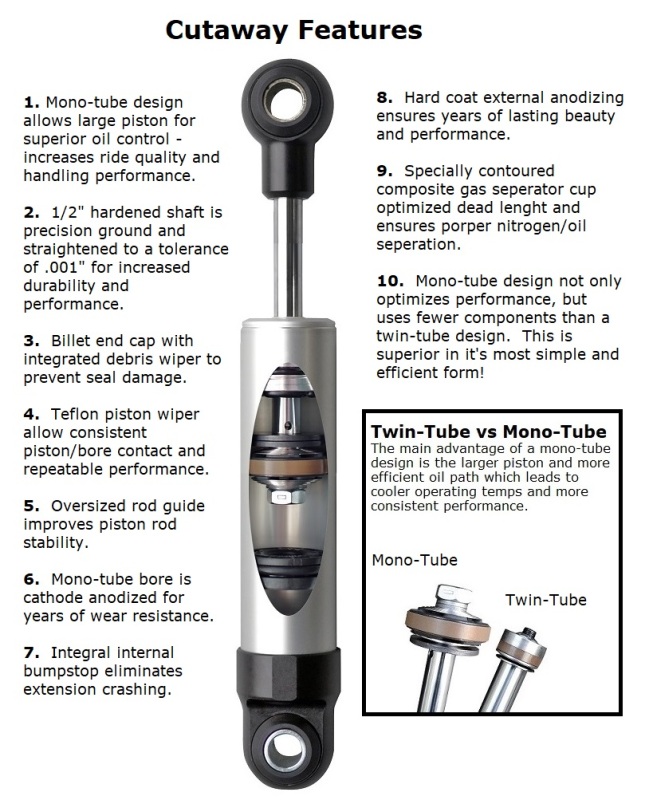 - 7.55" stroke HQ shock designed for rear T-bar/eye mounting