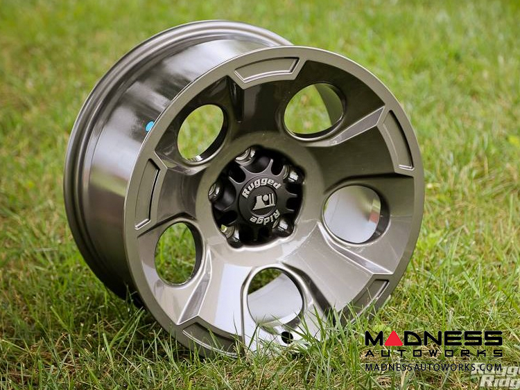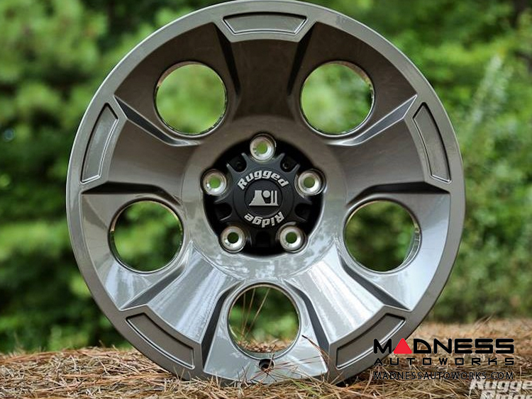 Designed from cast aluminum alloy, this wheel is available in multiple stunning finishes to create a unique appearance. This gun metal 18x9 inch wheel from Rugged Ridge features 4.53-inch backspacing with a -12mm offset and 5 on 5-inch bolt pattern. These wheels feature a hub-centric design, meaning this wheel will center perfectly every time.