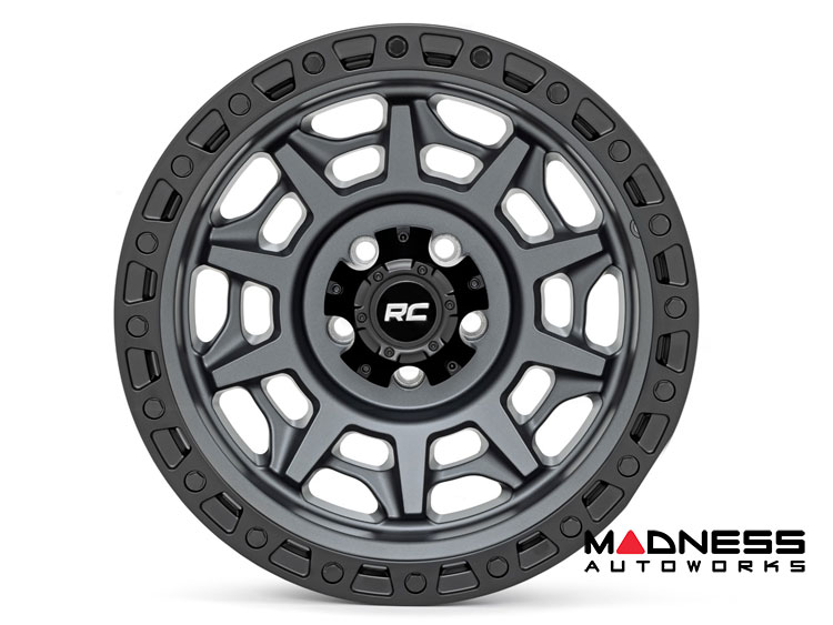 Jeep Custom Wheels (1) - Rough Country - 85 Series - Gunmetal Gray w/ Black Lip - 17 x 9.0 / 5 x 5 / -12 / 4.5"