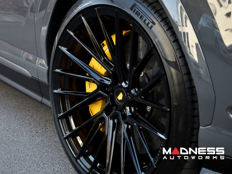 Upgrade the look of your Lamborghini Urus with these custom wheels from Vossen! Our relationship with Vossen Wheels goes back many years. We have worked jointly on a number of custom show vehicles and have now once again paired up to introduce their new wheel line to Lamborghini Owners. Timeless design meets modern functionality--The EVO Series symphonies monoblock structure with a multitude of unique styles, fitting anything from your exotic hyper car to off-truck application. CNC machined in Miami to exact specifications for every vehicle application. These Gloss Black wheels feature a multi-spoke design that looks fantastic on the Lamborghini Urus. The wheels are available in a variety of sizes for the Lamborghini Urus. Please contact us for available sizes and pricing. We also offer custom powder coating and complete tire and wheel packages! Call us for details and options!