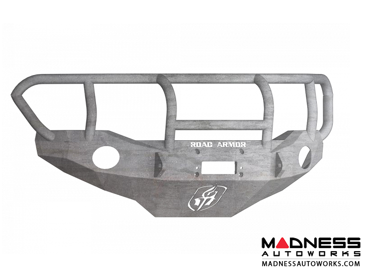 Stealth Series Full Width Raw Front Winch HD Bumper with Titan II Guard (FJ801Z) by Road Armor®. With Round Light Mounts. Recessed light ports for (2x) 4" diameter: PIAA 510 or similar and (2x) Light Tabs on Titan Guard. Boost your off-road machine's off-road protection to tackle the rugged trails and gnarly terrain with extra piece of mind by setting it with this Off-Road bumper.
