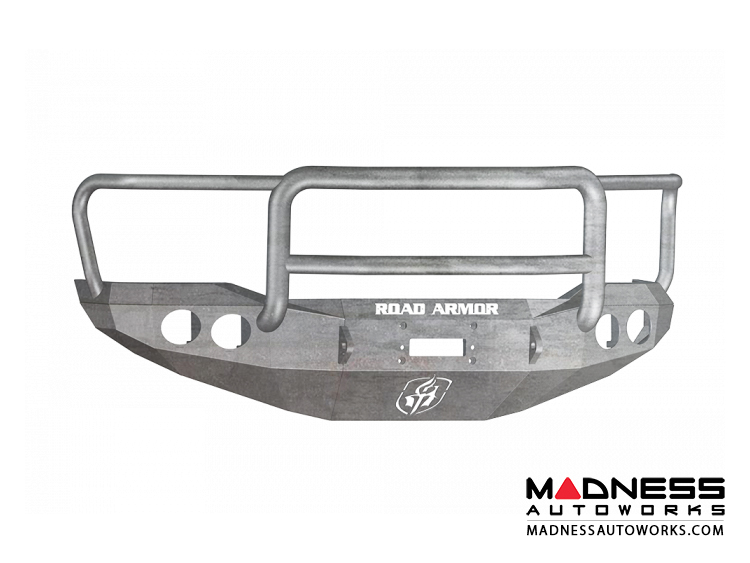 Road Armor Stealth Full Replacement Winch Bumpers are rugged, and loaded with added utility. The Original Faceted Stealth Series Steel Bumper in Raw Unfinished Steel was the pioneer of the aftermarket bumper segment. Specifically designed to follow, compliment, and accentuate the body lines of your vehicle, this masterpiece of metal houses a WARN M8000 or 9.5xp winch or similar and has recessed light ports for (4x) 4-inch diameter : PIAA 510 or Quake LED QFR199 and (3x) Light Tabs on Lonestar Guard*.