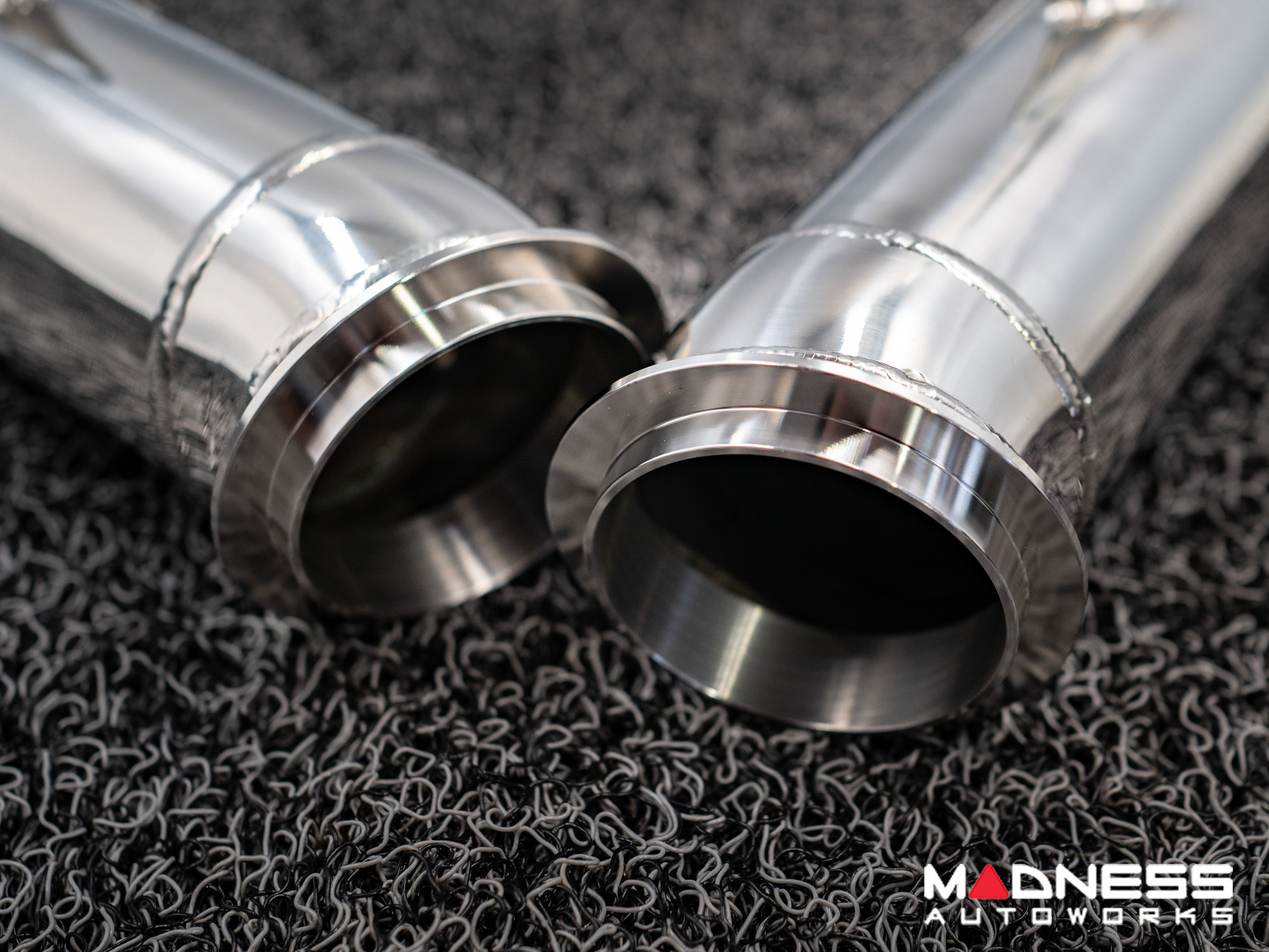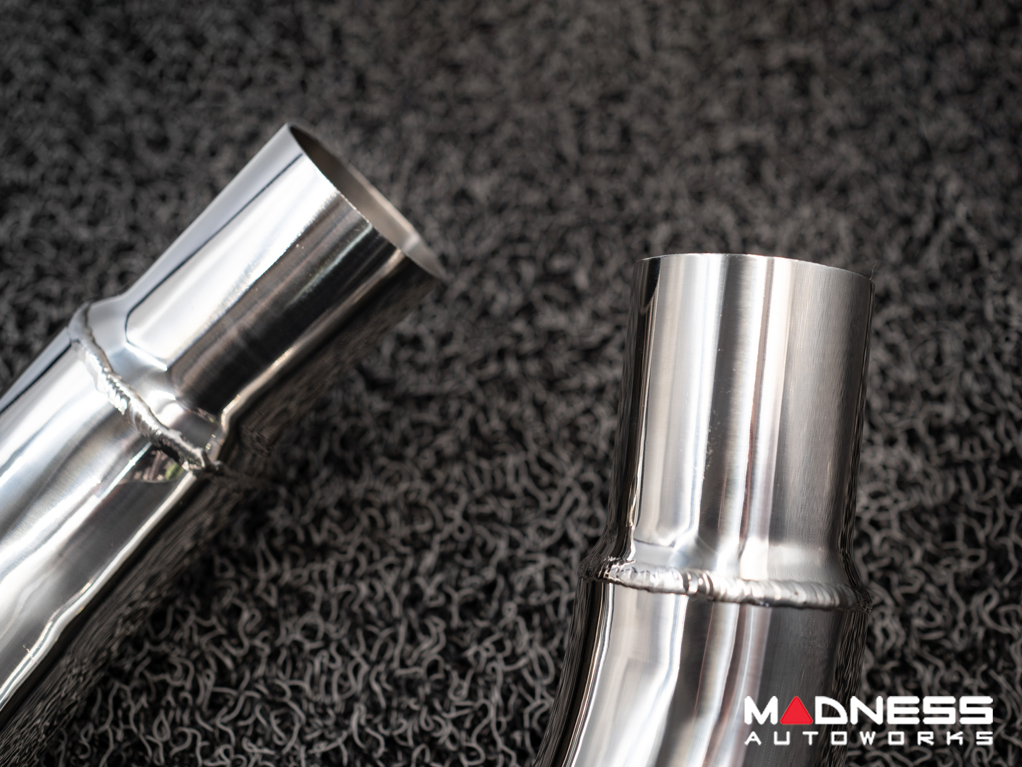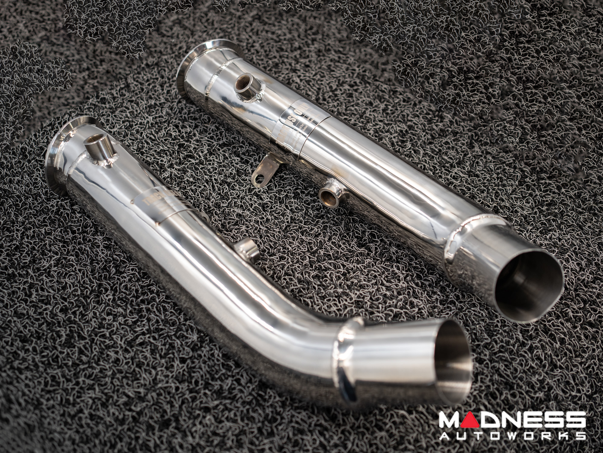 Crafted from superior T304 stainless steel and polished to a mirror finish, the downpipe set reflects unparalleled craftsmanship and durability. The TIG welding ensures robust construction, capable of withstanding the intense conditions of track racing, while the cat-less design significantly reduces weight, enhancing your vehicle's agility and speed. Ideal for those who are committed to extracting every ounce of potential from their Alfa Romeo, this downpipe is designed exclusively for track and race use, allowing you to focus on what truly matters: performance.