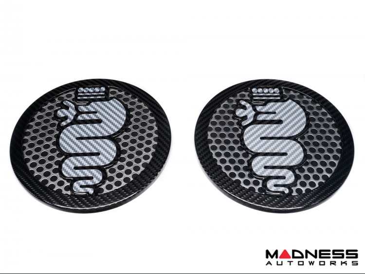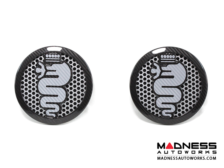 Alfa Romeo 4C Carbon Fiber Speaker Grill Covers - Alfa Logo in White