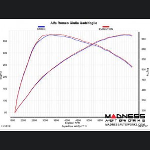 • The Evolution Line (Titanium) exhaust system fits directly onto the Giulia Quadrifoglio’s stock downpipes.